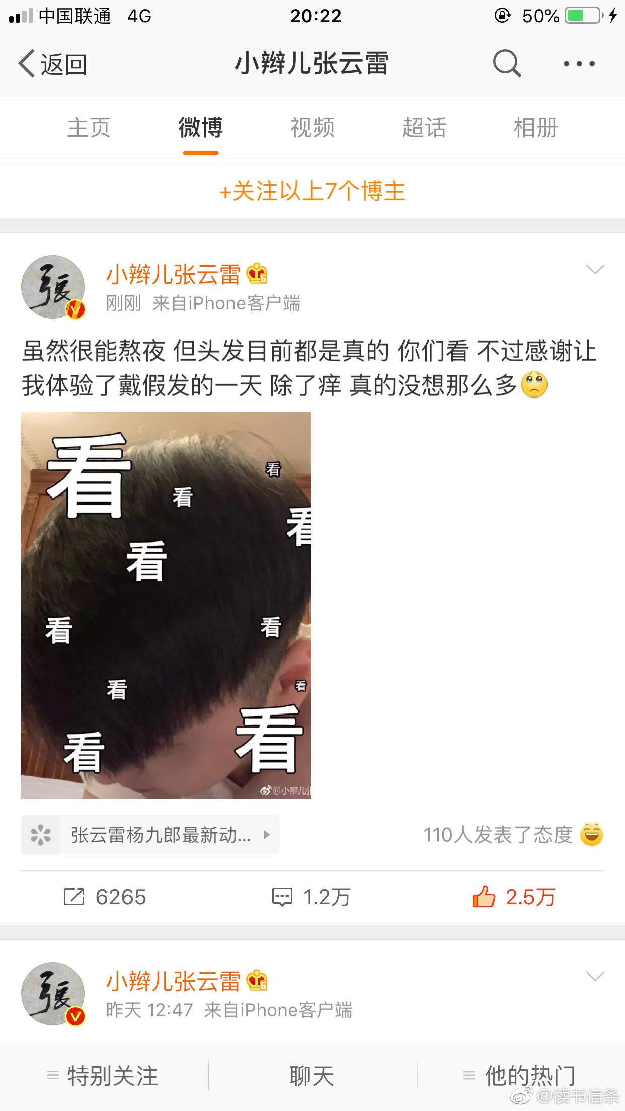 小辫儿张云雷,发量惊人,我酸了哈哈哈,不过这个戴上假发生无可恋的表情,着实很可爱啊!祝演出顺利哦