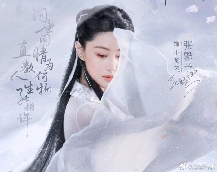 现在张馨予也终于演了小龙女,虽然只是一个代言的造型,但颜值气质符合小龙女的仙气清冷,而且扮相完胜当初同剧的陈妍希。张馨予版小龙女的造型,走的是刘亦菲版的路线,发型妆容简单素净,服装精致飘逸。而张馨予也没有辜负高水准的造型,演绎的不输最受好评的刘亦菲,比想象中更惊艳。