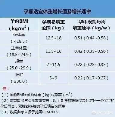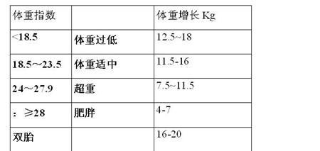 孕期体重增长标准