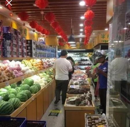 主要有各种新鲜水果 ,如梨、苹果、香焦、……蔬菜: 芹菜、茄子、辣椒、豆角、葱蒜……
