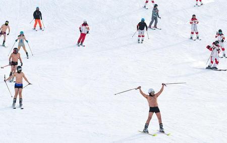 丝绸之路国际滑雪场。男款“比基尼”滑雪场景一瞥。勒克儿 摄