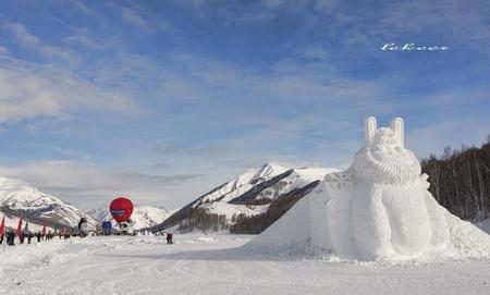禾木冰雪嘉园。图瓦人冬季旅游代言人“雪怪阿乐”雪雕。勒克儿 摄