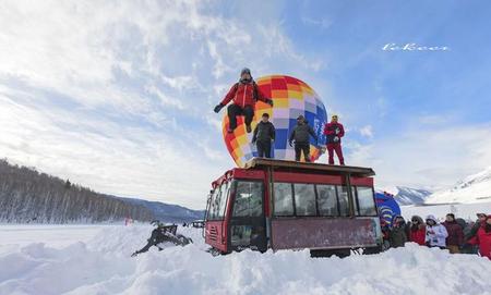 禾木冰雪嘉园:泼雪活动。勒克儿 摄