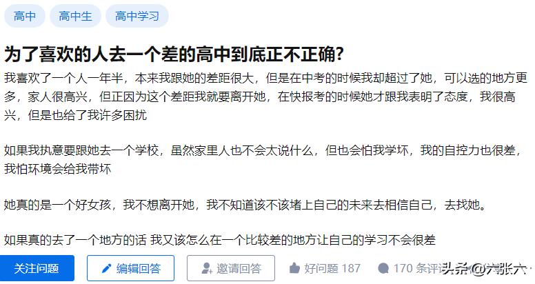 先看一下这个问题说的是什么:为了喜欢的人去一个差的高中到底正不正确?