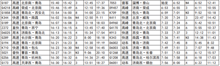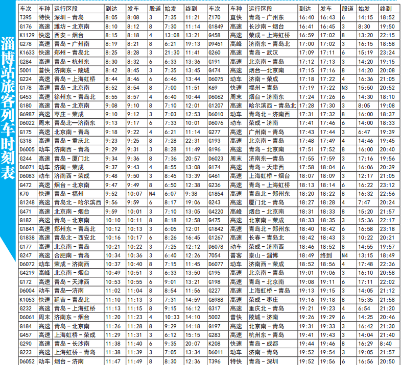 淄博火车站新列车时刻表16日启用 抢先看!