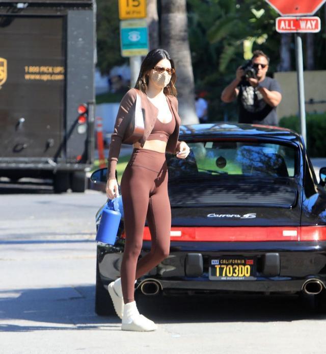 肯达尔·詹娜穿一套紧身运动装出街,网友:她身材保持得很不错!