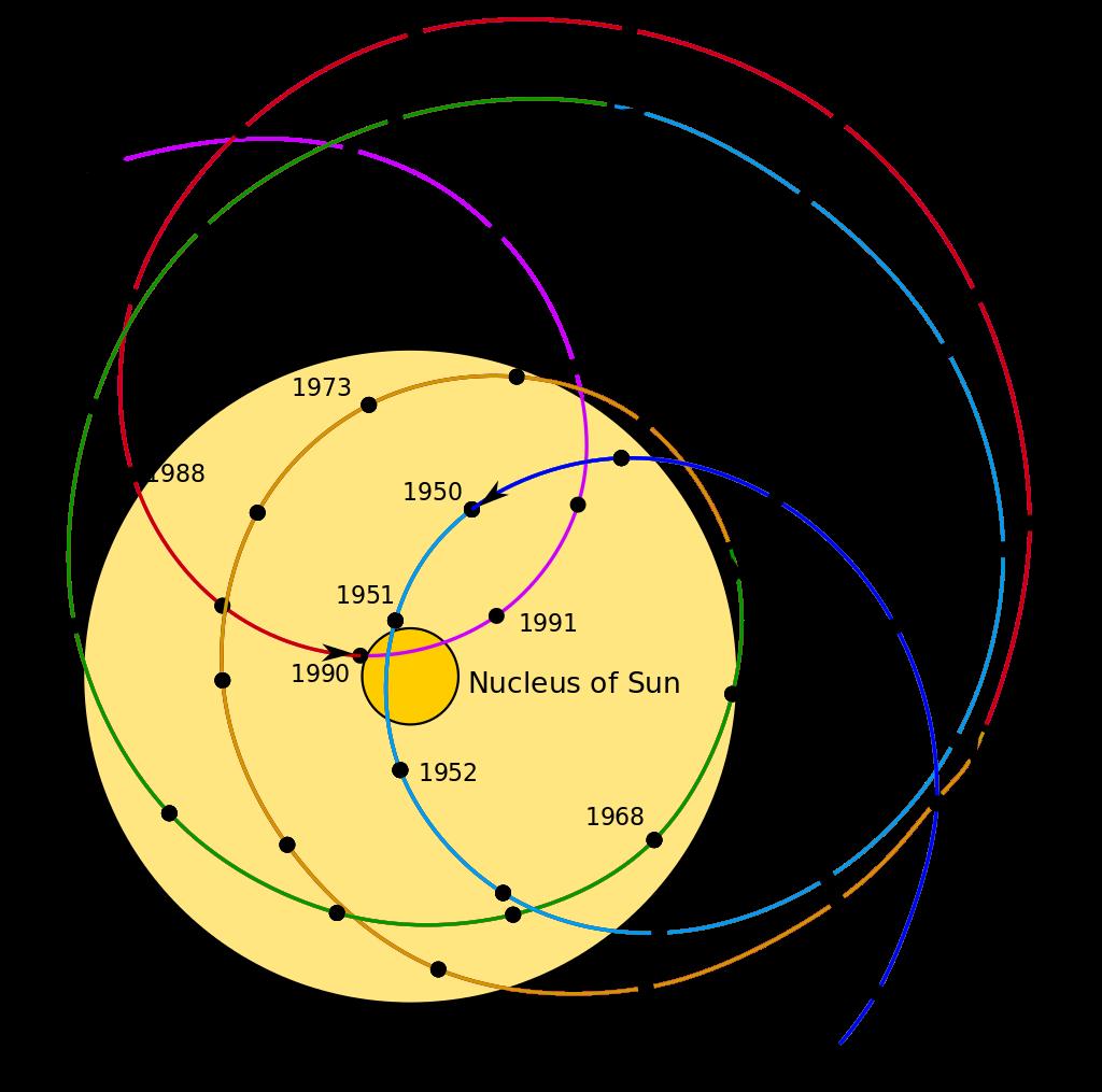 图解:太阳系的质量中心运动相对于太阳的位置。