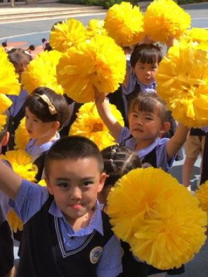 随着激昂的“运动员进行曲”,小小旗手高举国旗,正步到升旗台,将国旗交给升旗老师,继而奏响国歌,全体师幼行注目礼,注视着国旗缓缓升起,心中肃然起敬。
