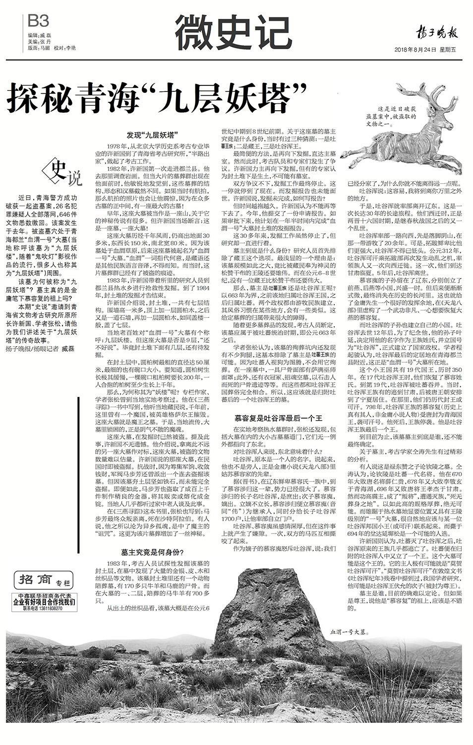 近日,青海警方成功破获一起盗墓案,26名犯罪嫌疑人全部落网,646件文物悉数缴回。该案发生于去年。被盗墓穴处于青海都兰“血渭一号”大墓(当地称呼该墓为“九层妖楼”,随着“鬼吹灯”影视作品的流行,很多人也称其为“九层妖塔”)周围。