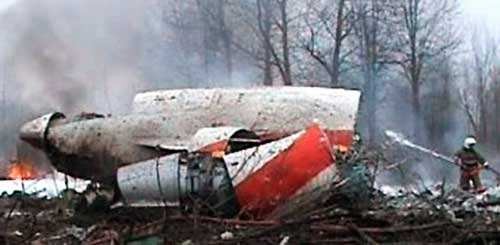 2010年4月10日,波兰总统卡钦斯基乘坐空军101号图-154M飞机,赴俄罗斯西部城市斯摩棱斯克参加”卡廷事件”70周年纪念活动。然而不幸的是,飞机在斯摩棱斯克空军基地机场着陆时坠毁,事故造成包括卡钦斯基夫妇在内的 88名乘客和8名机组成员全部遇难。