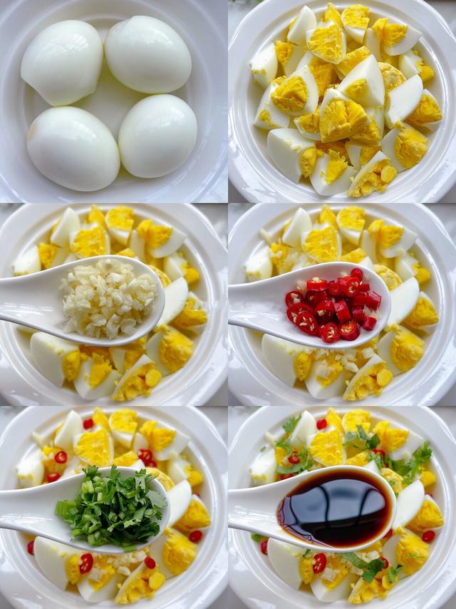 1️⃣鸡蛋煮熟切块,加入1勺蒜末2勺生抽半勺香醋1勺香菜1勺小米辣适量,拌匀即可✅。我口味淡没加盐,重口的可以加少许盐