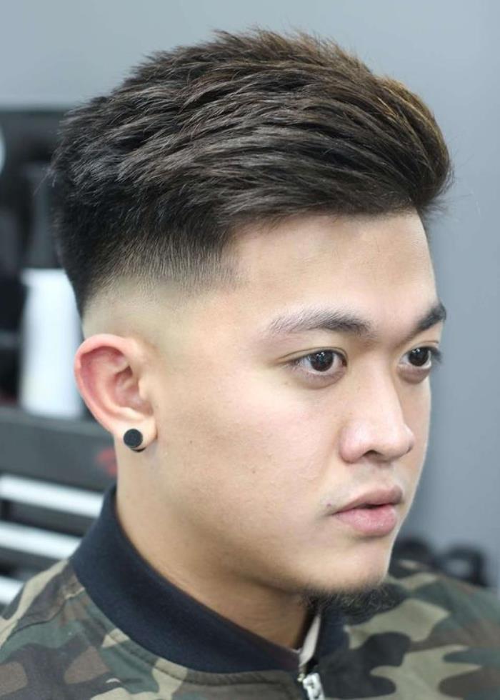 圆脸的男生,最好是把两边剃得干干净净,否则旁边外岔的头发会额外增加你的脸型宽度。