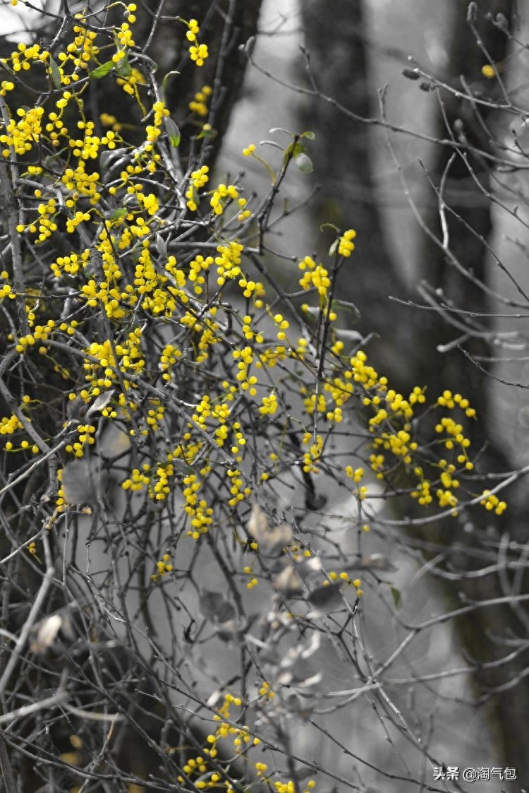冬日里山峦起伏,白雪皑皑,层层白雪之下露出星星点点的灿黄,如冬日里最早绽放的迎春花,迎风招展,这也是槲寄生。