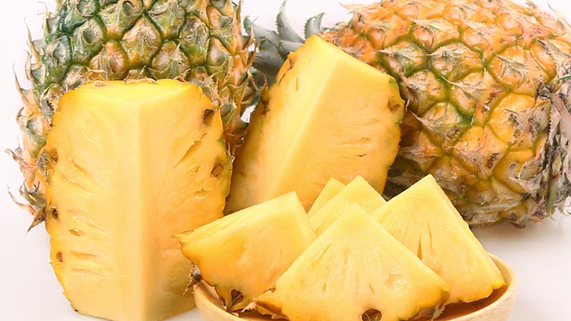 菠萝有很好的食疗保健作用,它含有的菠萝蛋白酶能溶解导致心脏病发作的血栓,防止血栓的形成,大大减少心脏病人的死亡率。菠萝中所含的糖、盐及酶有利尿、消肿的功效,常服用新鲜菠萝汁对高血压症有益,也可用于肾炎水肿、咳嗽多痰等症的治疗。菠萝中大量的蛋白酶和膳食纤维能够帮助人体肠胃消化,而且由于膳食纤维体积较大,吸附性好,能带走肠道内多余的脂肪及其他有害物质,对于预防、缓解便秘症状都有明显的效果