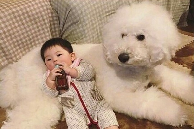 与小型泰迪同属一个品种的呢,只不过巨泰长起来能达到一米四五。