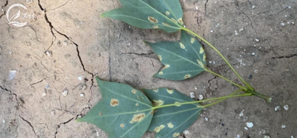 三角槭等常受其害,主要发生在叶片上,发病初期叶片上产生点状褪绿斑,病斑中央褐色,边缘紫红色,后病斑逐渐扩大成圆形、近圆形或梭形大病斑。发病后期,病叶上出现黑色膏药状、隆起于叶表面的许多小漆斑,各漆斑之间彼此分离或互相连接,不规则形,发病叶片提前脱落。