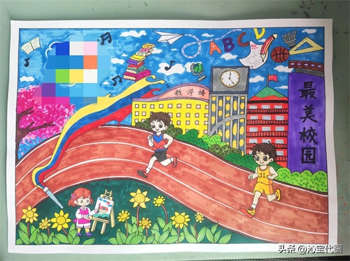 最美校园主题绘画我的校园儿童画少儿校园画儿童画我爱我的学校