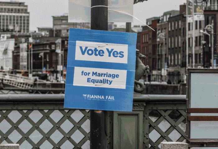2015年,爱尔兰就同性恋婚姻是否合法举行全民公投,最终以62%对38%的悬殊比例通过,同性婚姻正式得到爱尔兰法律的承认。