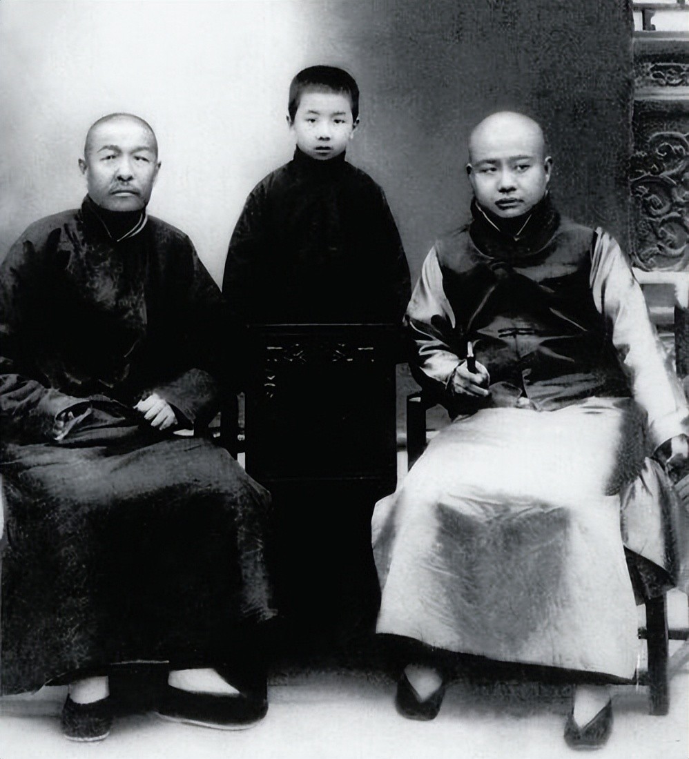 启功(中)和祖父裕隆(左)、姑祖丈合影