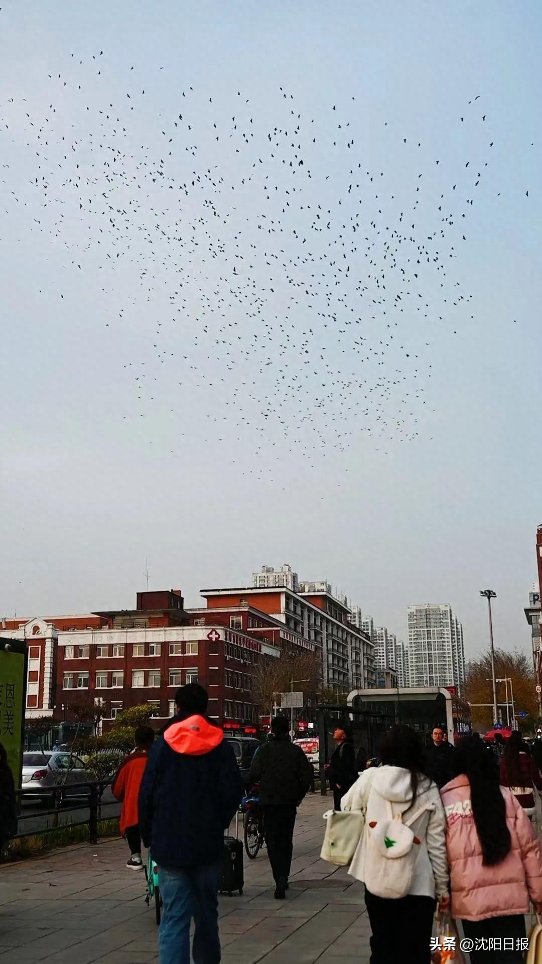 11月15日,记者在沈阳站、太原街附近采访乌鸦群景时,几位附近店铺的业主告诉记者。