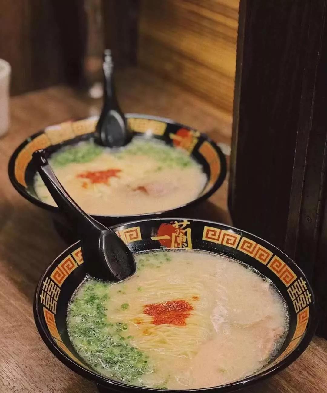 来张在店铺吃的一兰拉面的图片,放点葱花更好香有对比才有说服力嘛!