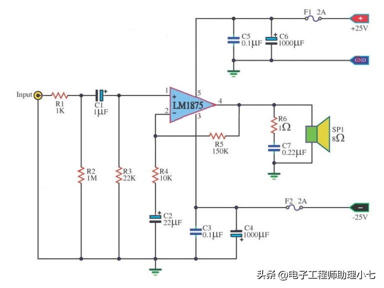 下面为LM1875功放内部原理图:
