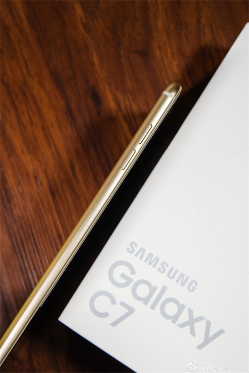 另外,Galaxy C7保留了左侧音量键、右侧电源键的设计,卡槽位于电源键下方,边框底部是耳机接口、麦克风、Mirco-USB接口和扬声器,整体布局和谐统一,但是对于用惯了电源键和音量键在同一侧的童鞋来说可能一开始会有点不适应。