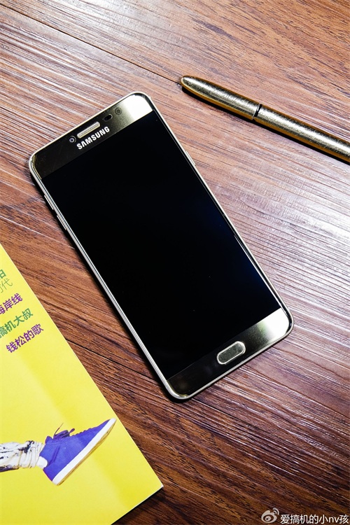 Galaxy C7有枫叶金、蔷薇粉、皎洁银、烟雨灰多款配色可供选择,而本次评测的主角是枫叶金版本。外观上,首先最值得一提的就是正面了。Galaxy C7的正面是经典的“三星脸”,表面覆盖了一层采用特殊工艺的 2.5D 玻璃,而这块2.5D 玻璃面板与我们常见的大有不同。