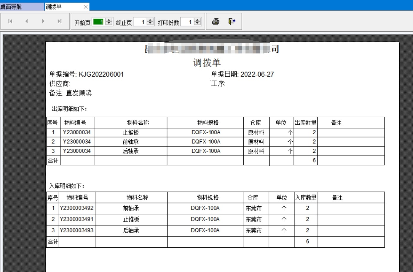 打印调拨单