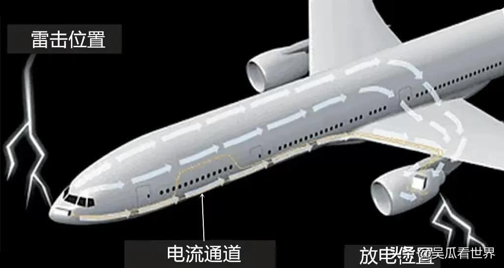 当闪电击中飞机时,单位面积、单位时间内聚集大量电荷,如果电流没有及时传导出去,非常容易造成飞机结构的烧蚀和损伤,所以为了避免飞机的损坏和乘客安全,在飞机上加入很多高科技和特殊材料。