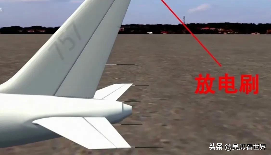 除了金属网之外,在飞机的主翼或者尾翼尖端处安装静电释放器,由几十个金属放电刷组成,放电刷把飞机外壳积累的大量电荷释放到大气中。