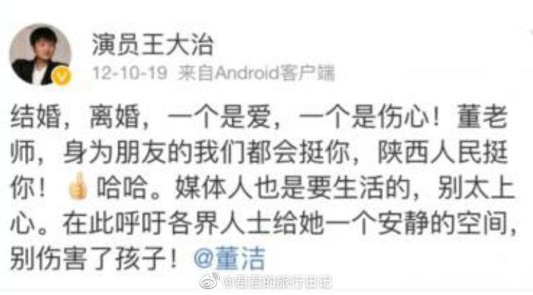 而他更是在当时发微博,力挺董洁,说道:陕西人民挺你,给她一个安静的空间,别伤害了孩子!