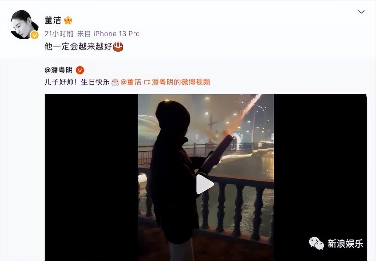 2023年2月5日,潘粤明在儿子顶顶生日这天@董洁,并提到“儿子好帅!生日快乐“。