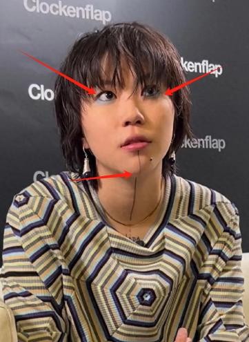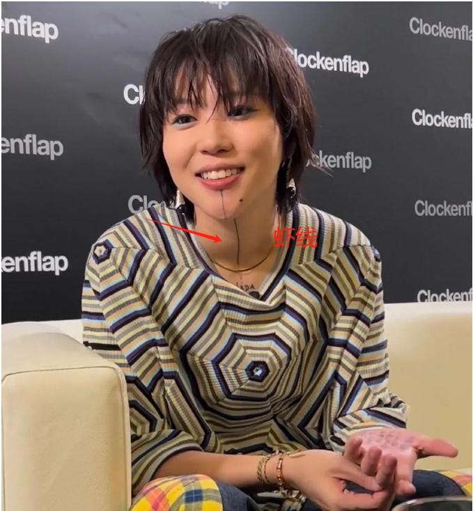 不过最为人注意的还是她下巴那的一条线了。