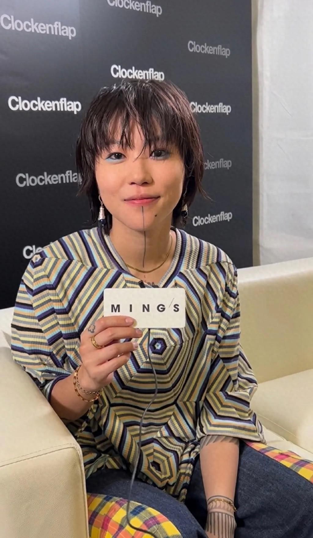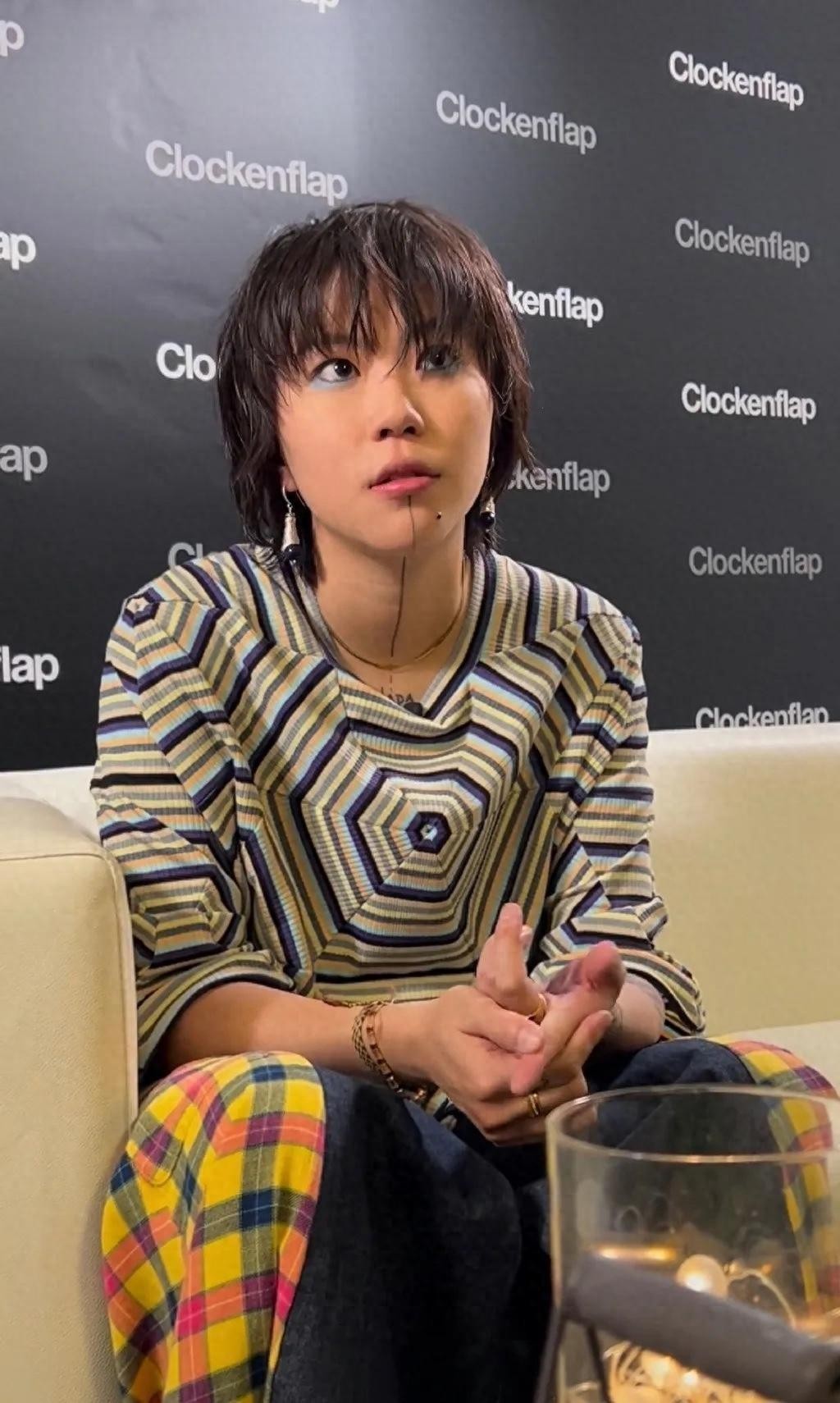 窦靖童穿着一个毛衣材质的上衣,上面的图案就像是蜘蛛网一样,由一道一道的线条组成, 让人有种眼花缭乱的感觉。