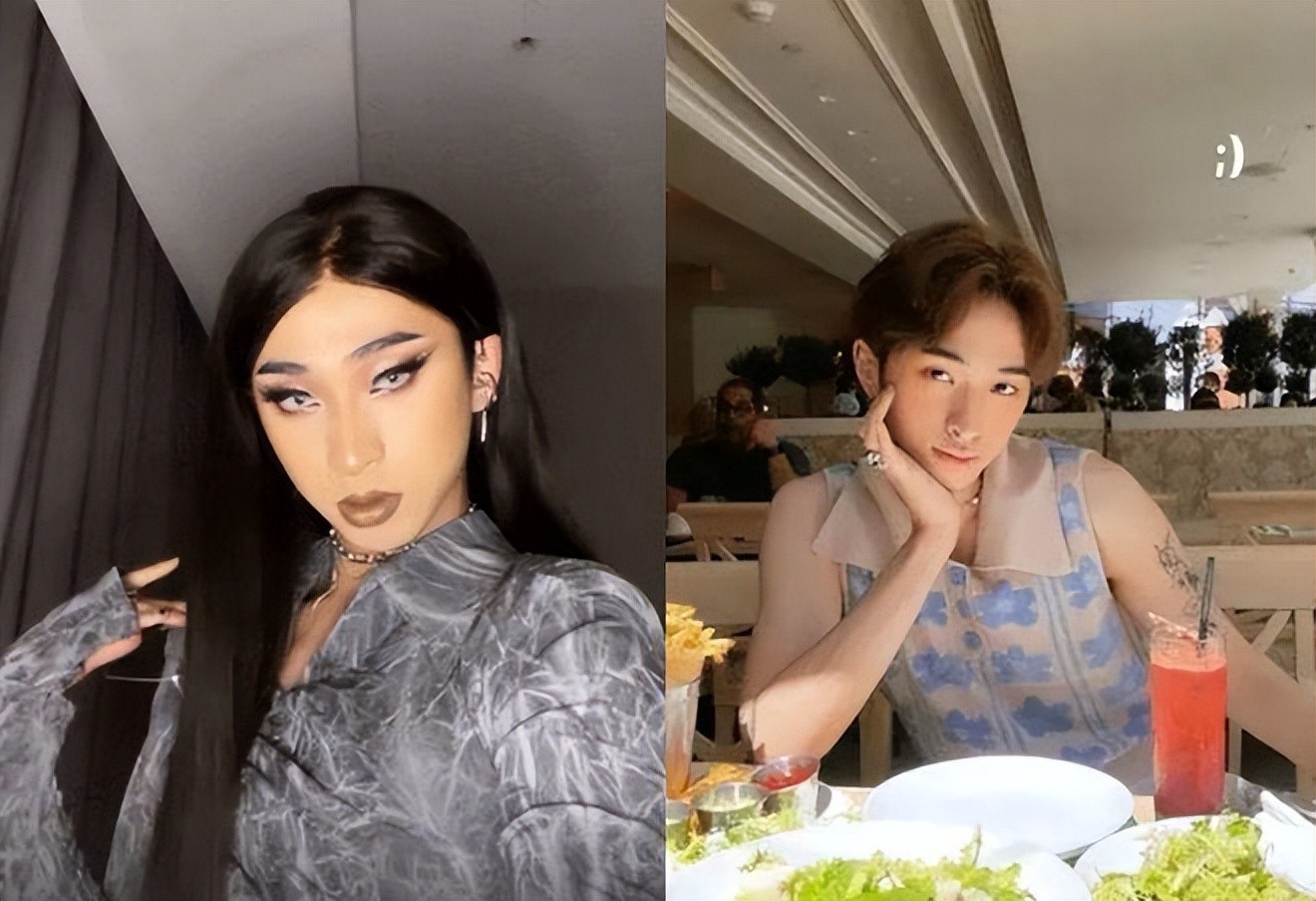 而且她也没有贴双眼皮贴什么的,所以看着就有一种割裂感,那个蓝色的眼影好像是多出来的。