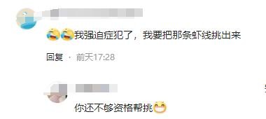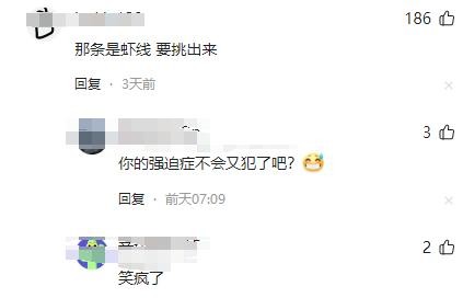 看来这位网友真是一个“海鲜爱好者”,看见这根黑线就想起来了虾线,不过这么一联想,确实是挺像的。
