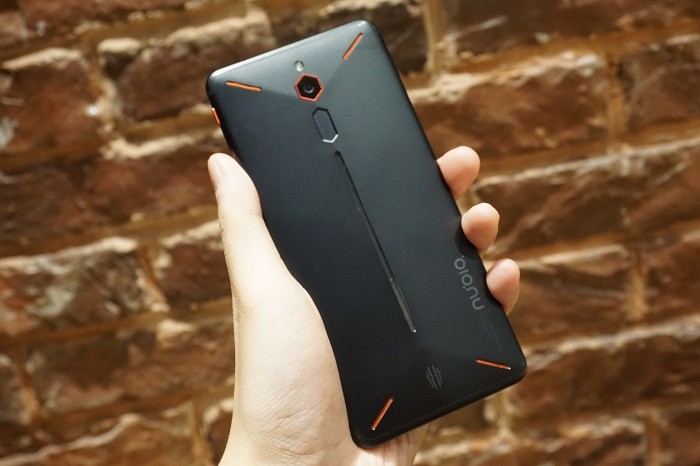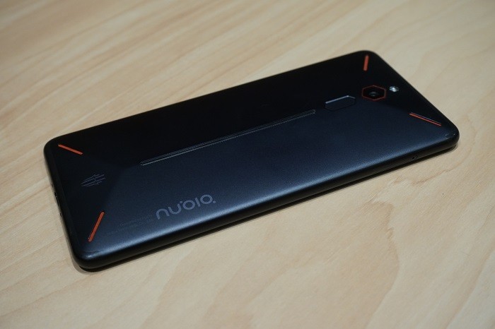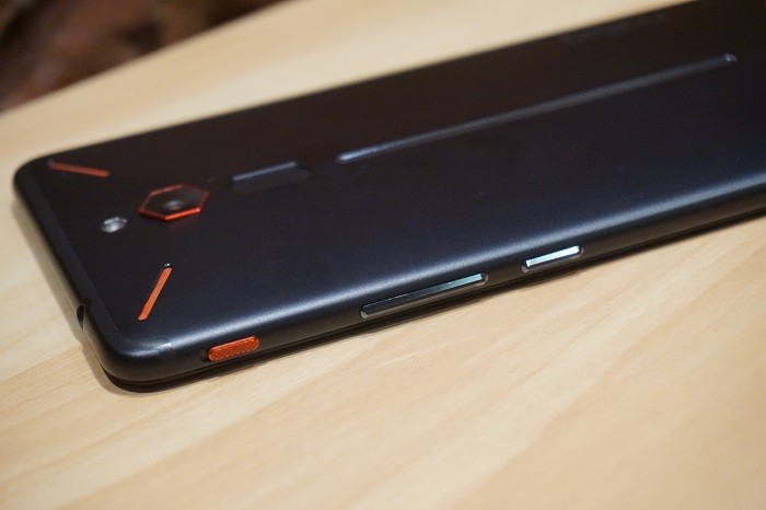 红魔手机专为游戏玩家设计的外观体现在手机背面,这种棱角分明的设计被称为向量美学。背部凸起的流线型设计,可以让玩家双手握持时更加舒适,中间凹槽部分则是手机的指纹识别系统。
