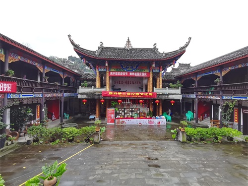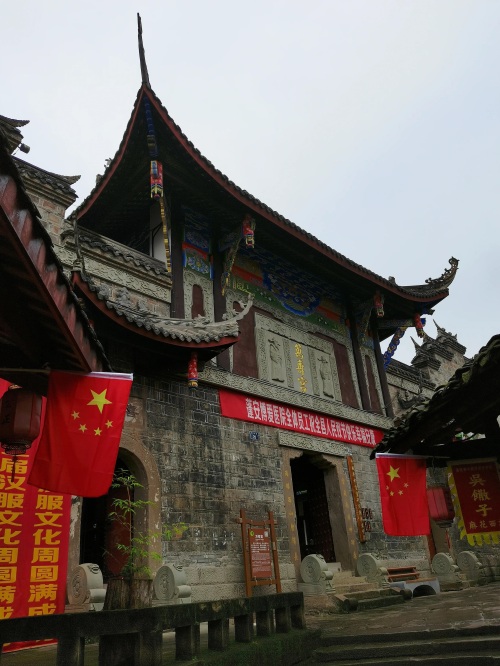 位于古镇下河街的万寿官亦作江西会馆,始建于明朝嘉靖年间,清晚期,为供奉武圣关羽而建武圣宫,整个建筑均依山而建,前殿、偏殿和正殿均顺山势由低至高依次而建,气势宏伟。