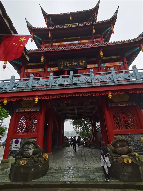 屹立古镇嘉陵江边的财神楼,始建于唐初,清咸丰年间最后培修,为了纪念画圣吴道子,后人又命名为画江楼。财神楼共四层:一层为过街楼式,二、三层为特色茶饮,江景观赏,四层塑财神赵公明。登上楼顶,举目眺望,嘉陵江波光闪闪,百舸争流,对岸湿地,令人陶醉。