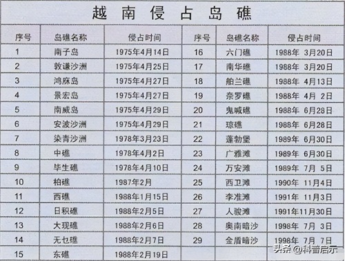 越南却占有29个南沙岛礁,其中包含接手南越侵占的岛礁,及后来逐渐侵占的南沙岛礁。