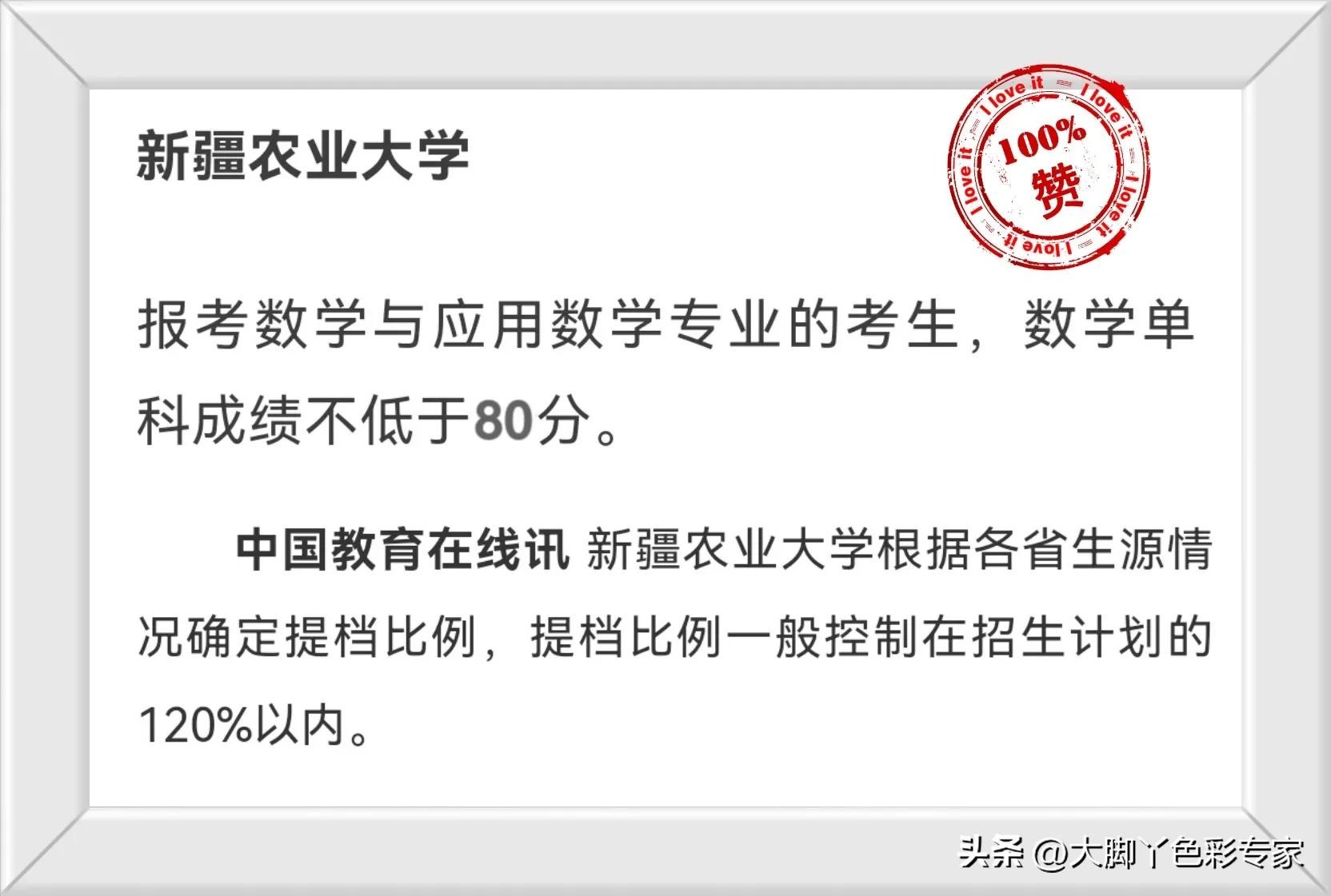 很坑爹的是新疆农业大学外省招生计划数量少,120%比例提档,实招10名提档12名,按分数优先的原则,末尾两位有可能被退档,也有可能当年报考人数多推高最低录取分滑档。