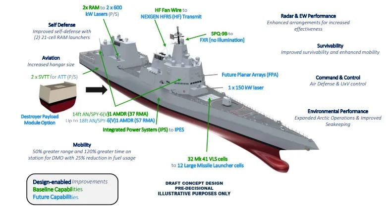 ▲美国下一代驱逐舰DDG(X)想象图