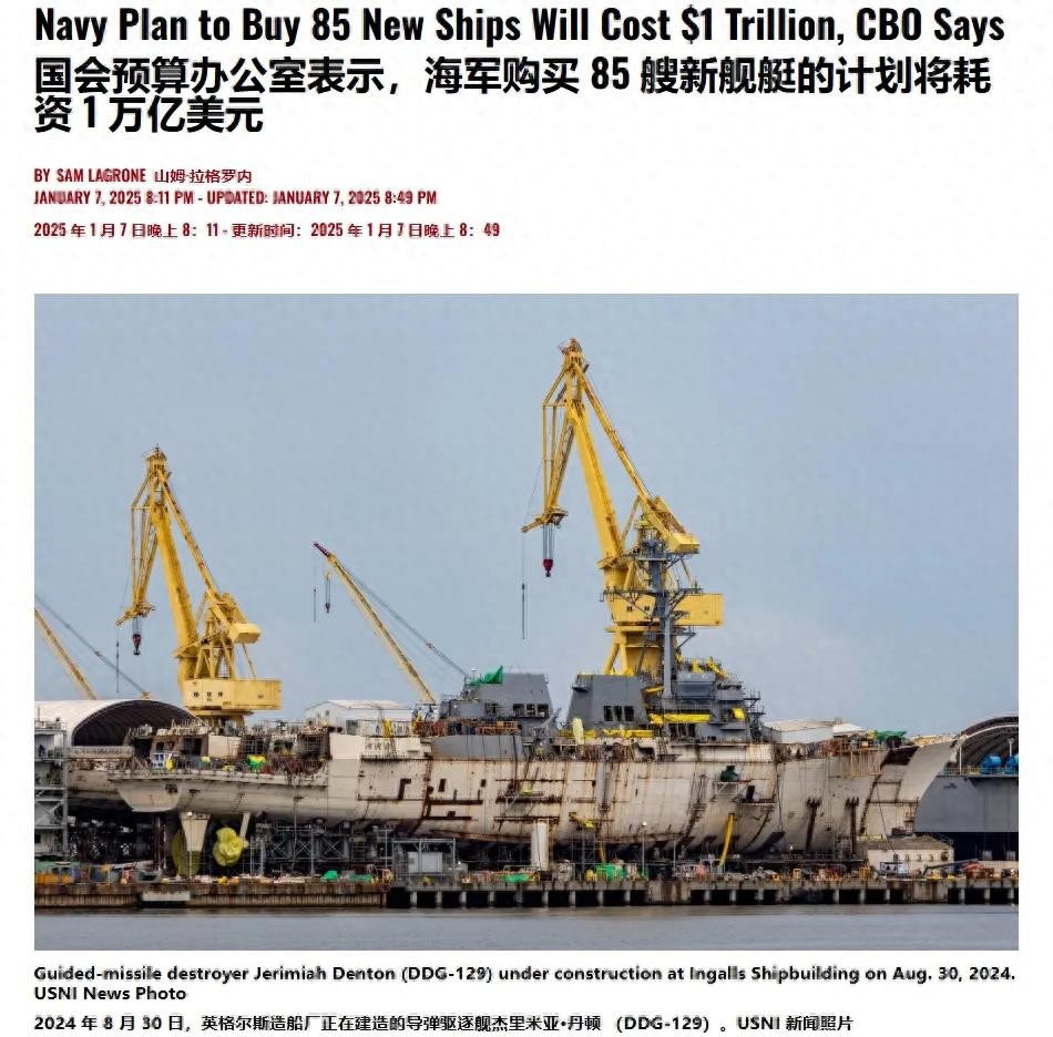 美国海军造舰成本飙升!25亿美元一艘驱逐舰,地主家也没有余粮了
