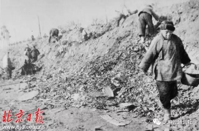 解放前天安门广场西边的垃圾堆。北京日报资料图。
