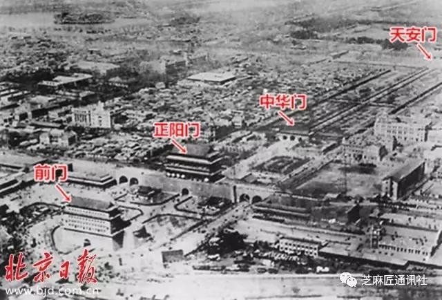 民国初年的天安门广场鸟瞰图。北京日报资料图。