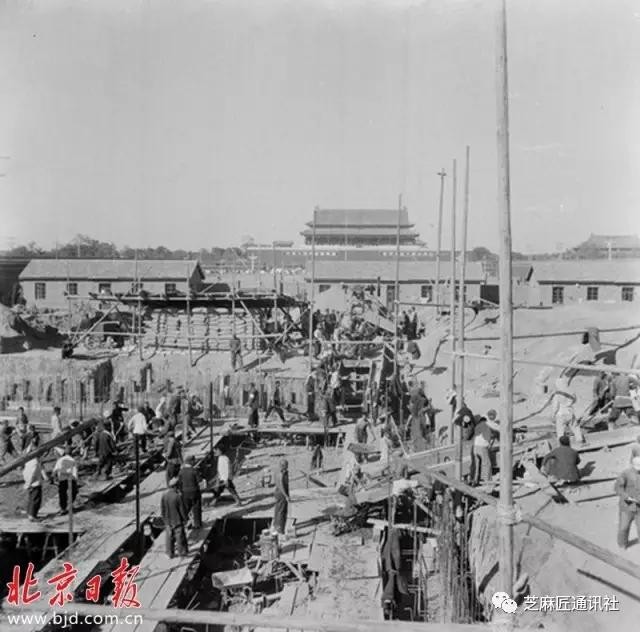 1952年 人民英雄纪念碑在修建中。 北京日报冯文冈/摄