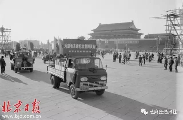 1977年,毛主席纪念堂主体结构工程4月底胜利完工。 北京日报 胡敦志/摄