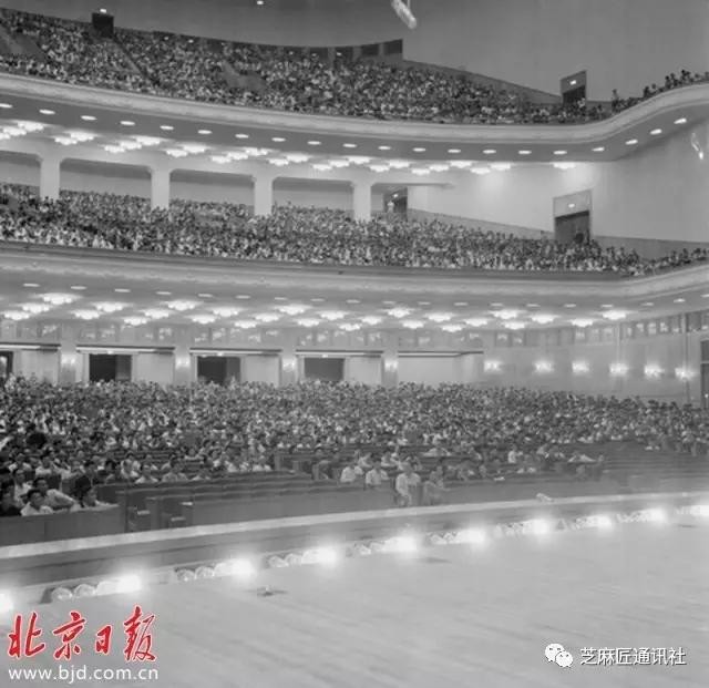 1959年9月1日,建设人民大会堂的工人们在万人礼堂里召开大会庆祝竣工,他们是这里的第一批座上客。