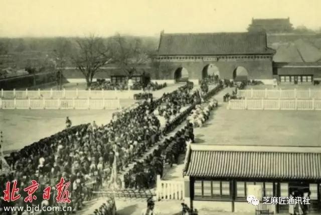 1902年,光绪慈禧回銮,刚进正阳门,要进大清门时的照片。北京日报资料图。